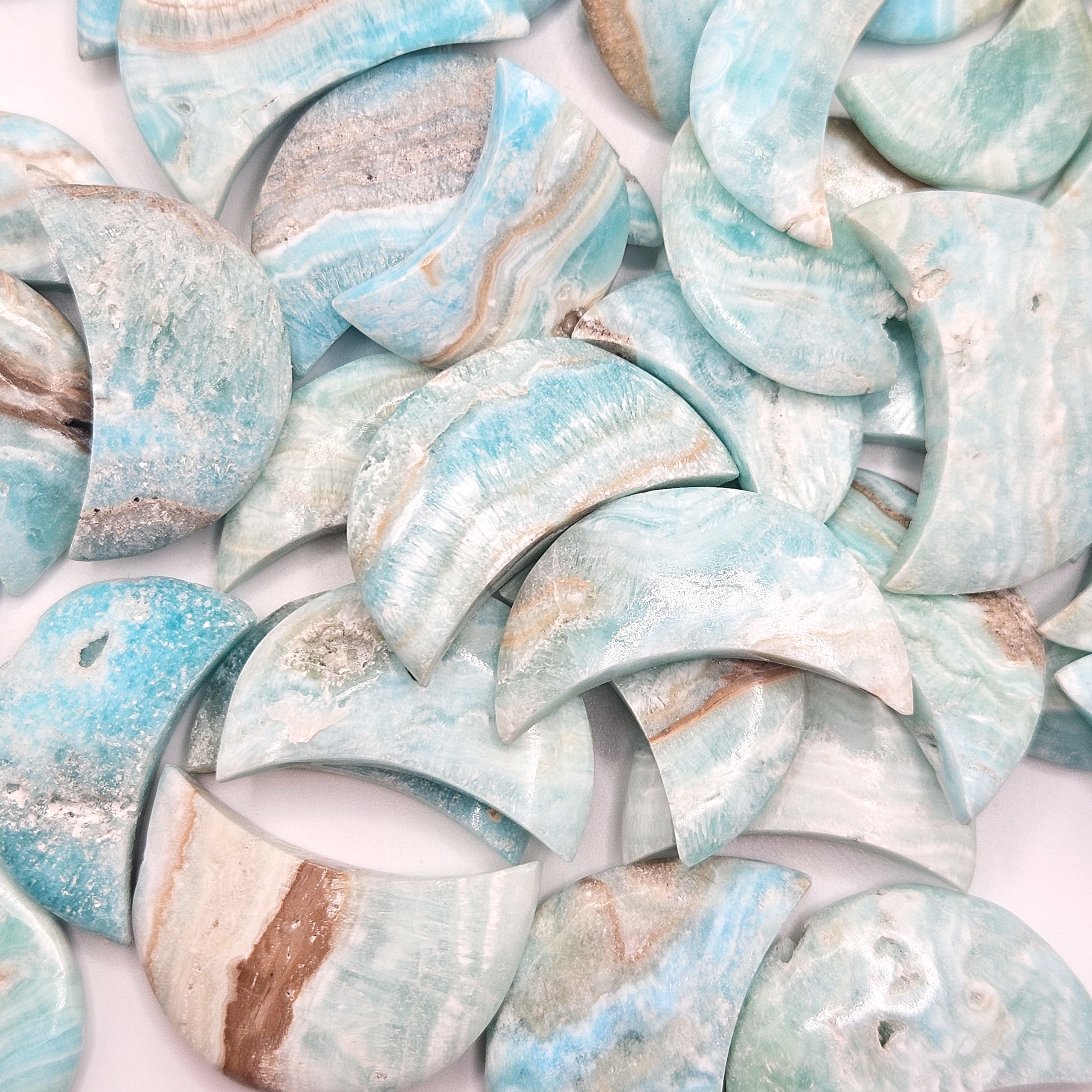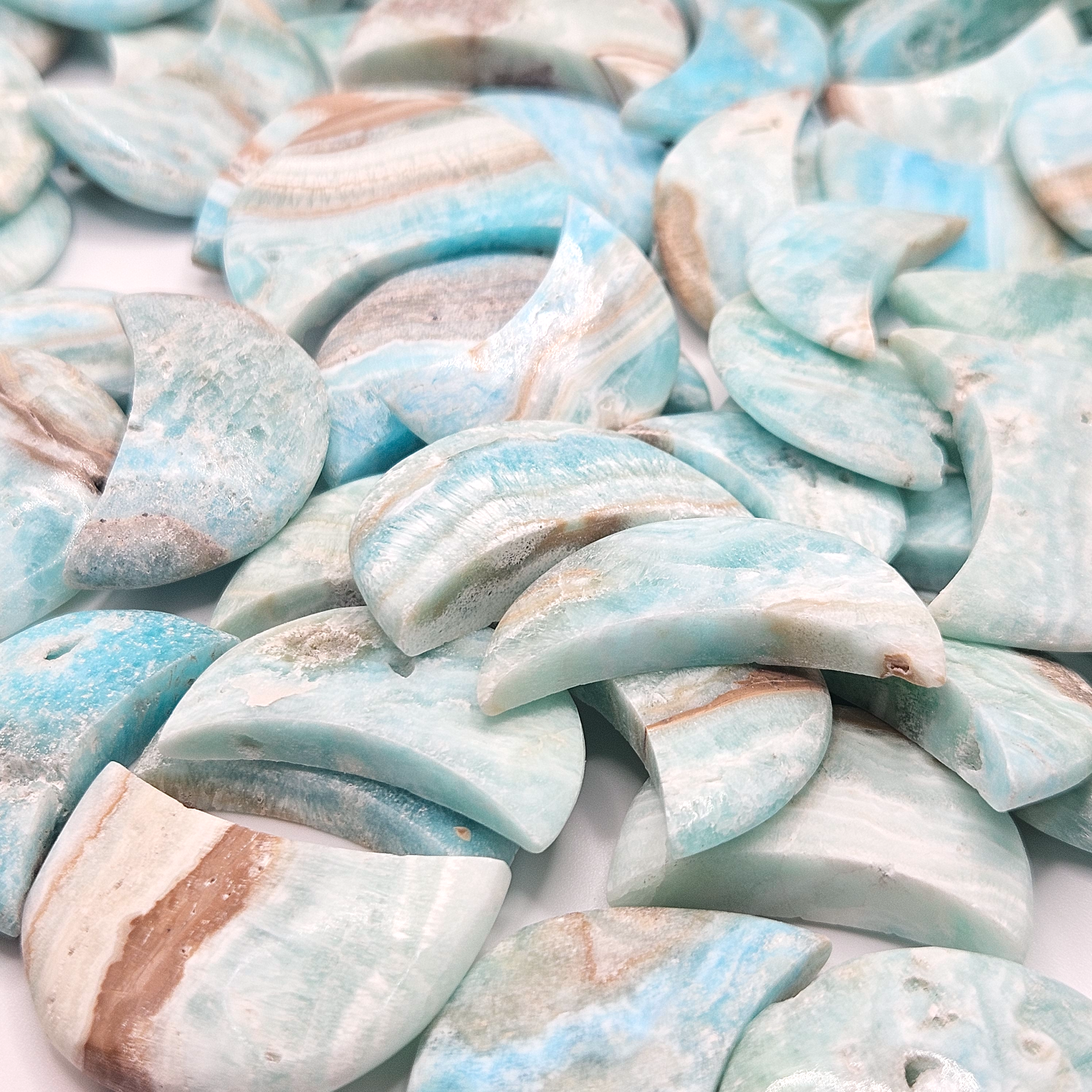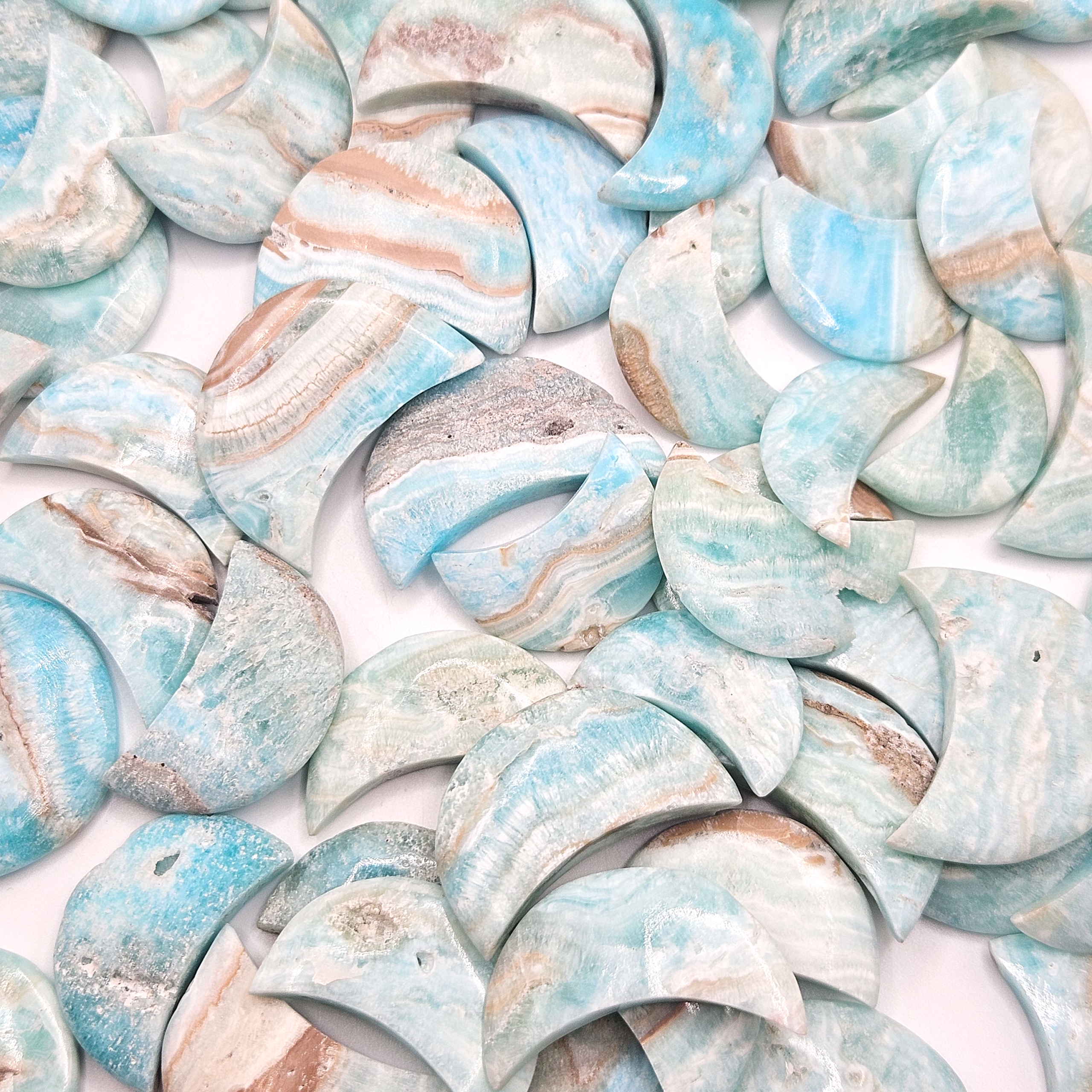 Bulk pack of beautiful blue aragonite mini moons. A guaranteed seller for your business.