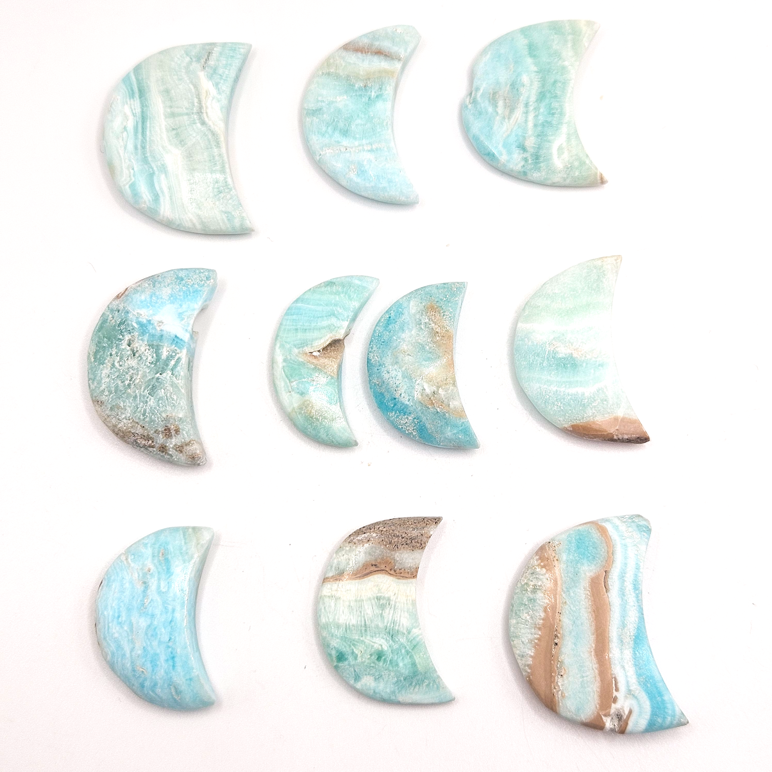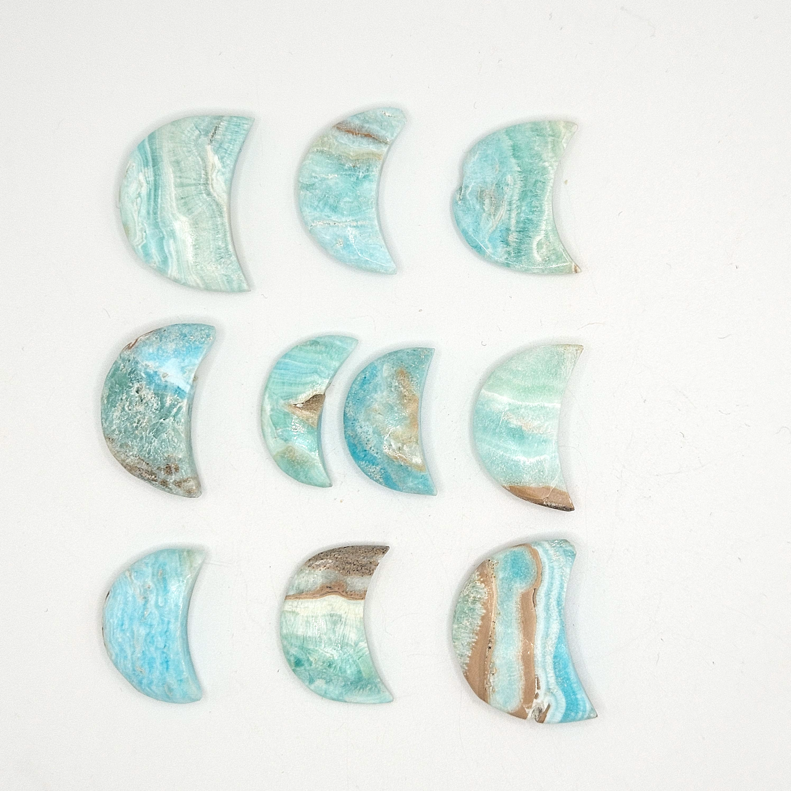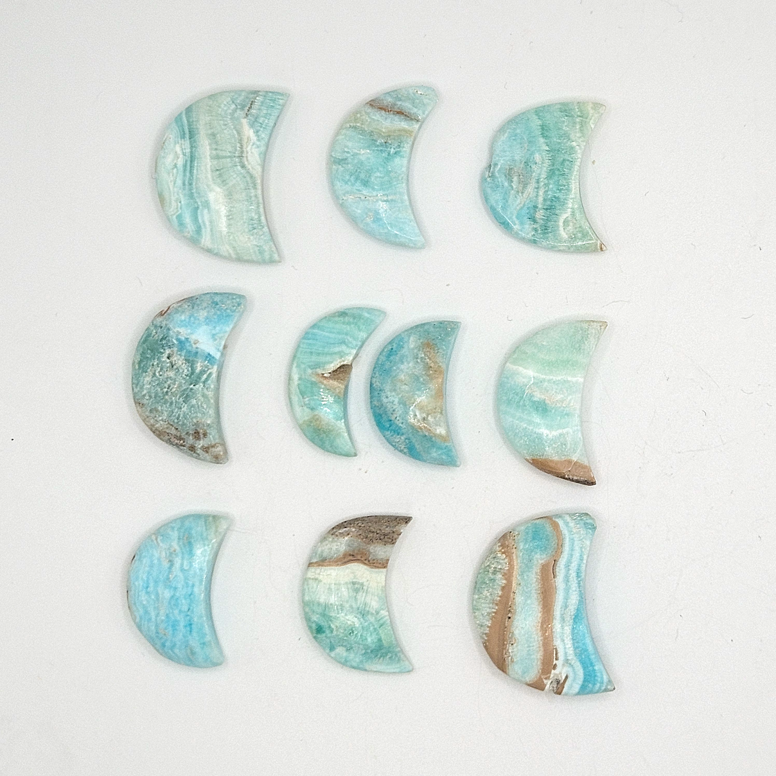 Blue Aragonite Mini Moon Carvings x10 Pcs